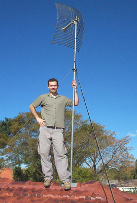 While I monitored signal strength on a computer in the house, Marcus was on the roof,