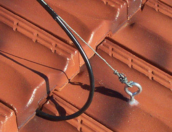 The three guy wires were straightened out, and appropriate locations on the roof for
