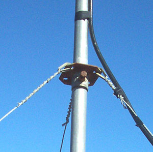 Electrical tape was used to attach the coax to the mast and to the guy wire,