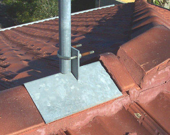 The saddle was placed on top of the ridge capping, and the mast temporarily located