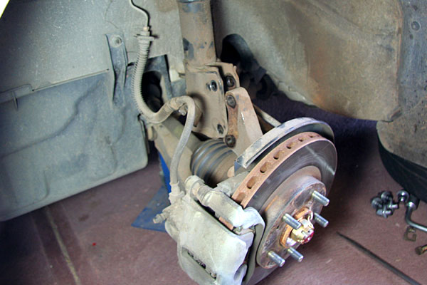 after removal of the brake line, ABS wiring and strut-to-steering knuckle bolts