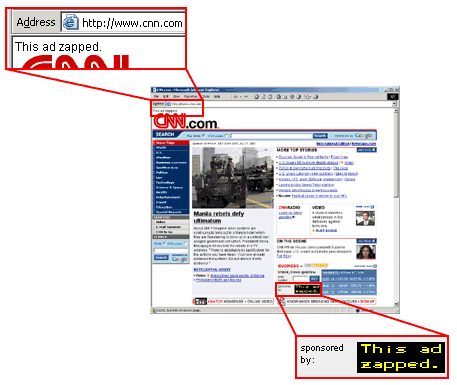 text string saying "This ad zapped", and how it replaces graphical ads with